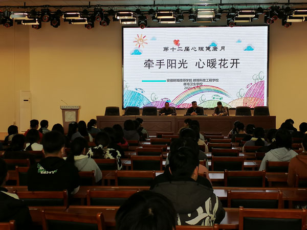 3月16日下午,我院第十二届心理健康教育月活动拉开序幕。本次活动月主题是“牵手阳光,心暖花开”。开幕式由心理健康室陈伶伶老师主持,陈华坤副院长、郭仁龙处长、部分班级学生代表出席了本次活动,开幕式上陈院长、郭处长分别发表了重要讲话,鼓励同学们积极参与活动,向同学们提出了强化心理素质的几点建议,希望同学们在活动中释放压力,了解维护心理健康的方法、途径,最后,陈院长宣布了本次心理健康活动月正式启动。