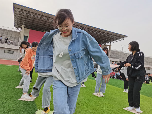 这个游戏增强了团队凝聚力和提升了团队荣誉感,使大家了解到每个人在团队中都起着重要作用。同学们兴趣盎然,加油声此起彼伏,操场上充满了欢声笑语。