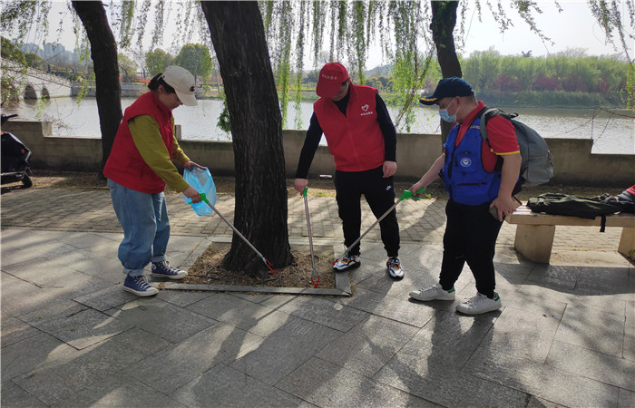 3月22日-28日是第三十四届“中国水周”。市人社局团工委与共青团蚌埠技师学院(蚌埠科技工程学校)委员会发起“‘河’我一起守护母亲河——美丽中国2021净滩行动”公益活动, 28日下午,组织24名学生志愿者沿张公湖沿岸开展垃圾清理活动。