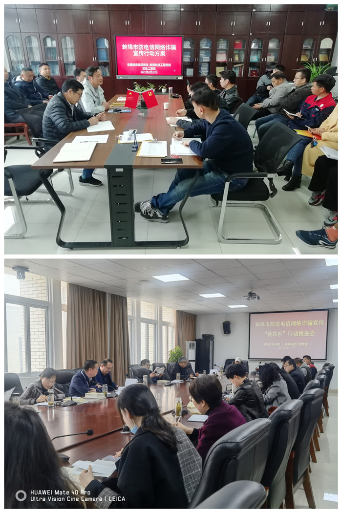为贯彻《蚌埠市防范电信网络诈骗宣传“铁布衫”行动计划实施方案》蚌平安办【2021】8号文件精神,4月7日,学院召开防范电信网络诈骗宣传“铁布衫”工作推进会。