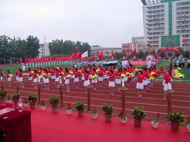 图为我校学生组成的鲜花方阵在全省技工院校运动会开幕式上的精彩表演
