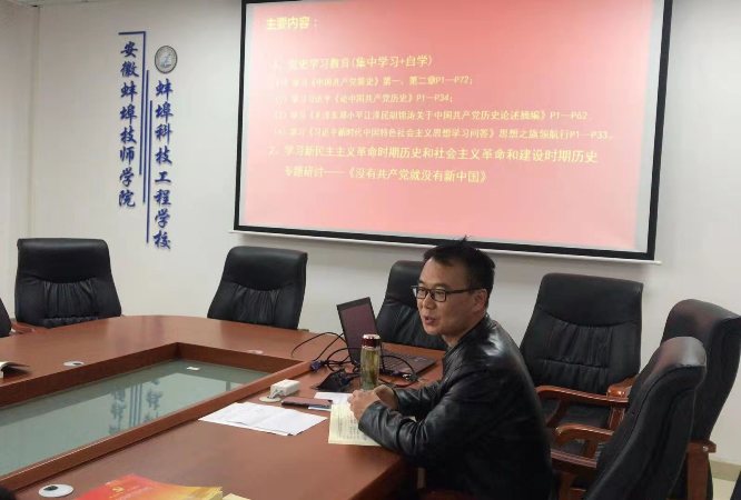 本次会议主要内容有二项。一、党史学习教育(集中学习+自学)。分别学习了:1.《中国共产党简史》第一、第二章P1-P72;2.习近平《论中国共产党历史》P1-P34;3.《毛泽东邓小平江泽民胡锦涛关于中国共产党历史论述摘编》P1-P62;4.《习近平新时代中国特色社会主义思想学习问答》思想之旗领航行P1-P33。二、学习新民主主义革命时期历史和社会主义革命和建设时期历史专题研讨——《没有共产党就没有新中国》。(供稿:一支部 徐琪 审核:王玮)