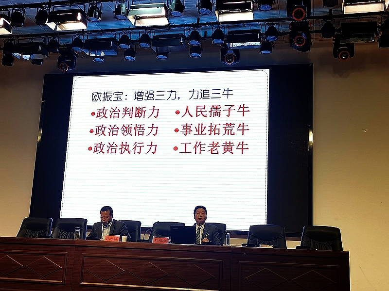 欧振宝以《学史崇德行大道 立德树人开新局》为题,从“为什么,学史崇德行大道;学什么,三大作风传家宝;怎么办,立德树人开新局”三个方面,对开展党史学习教育的重大意义、如何学习和把握党的历史以及落实立德根本任务等内容进行了全面阐述。整场报告内容详实、主题鲜明、内涵丰富,对于帮助我院提升党史学习教育效果起到很好的促进作用。