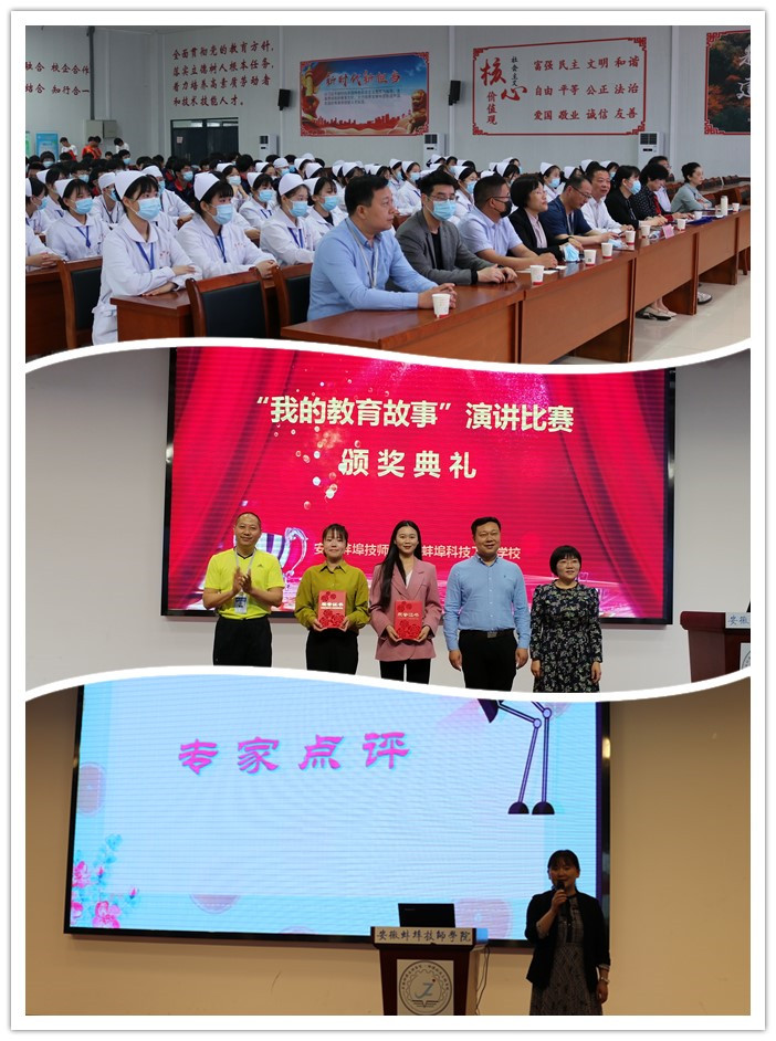 为展示班主任队伍风采,搭建交流班级管理经验的平台,同建育人环境,共享育人资源,2021年5月14日上午,由学生处牵头,名班主任工作室负责实施的青年班主任“我的教育故事”演讲比赛在多功能报告厅隆重举行。院党委书记陈元高、院长宋晓宾、院党委副书记王春燕、副院长陈华坤到现场莅临指导,并邀请了人社局职业能力建设科科长鲍帅、人社局团工委副书记(主持工作)胡浩、教育局职成科副科长赵媛珺等领导,以及蚌埠市名班主任参加了本次活动 并担任评委,部分班主任和学生到场观摩,学生处高德萱老师主持。