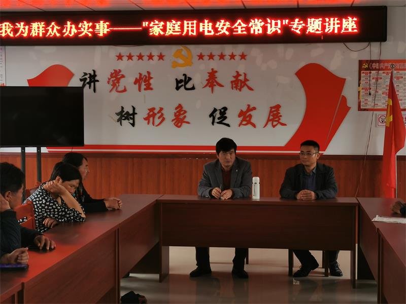 活动中,四支部党员志愿者张孝坤老师,从触电原因、触电急救方法、试电笔的使用及电气火灾的应急解救措施等方面,普及科学用电、安全用电等常识,主要针对村民用电安全知识的薄弱环节详细讲解,为村民科普专业性用电安全知识。活动现场村民代表与志愿者老师积极互动、热情高涨。