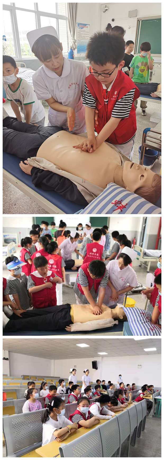 5月27日下午,蚌埠市第二实验小学学生前来医护系参与心肺复苏职业体验活动。