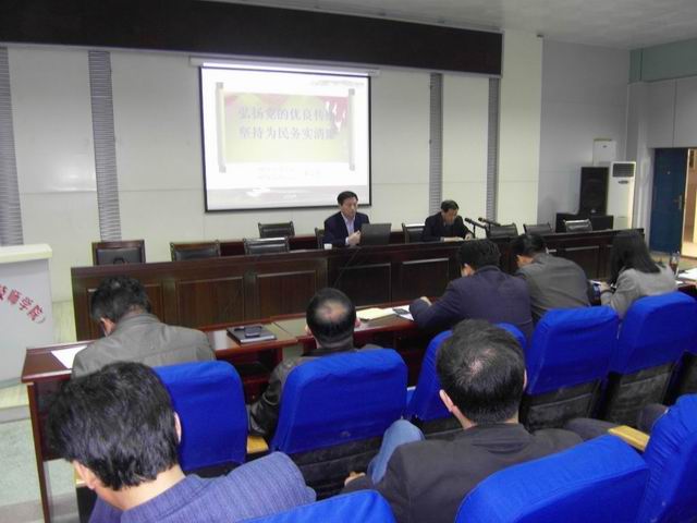 3月26日下午,我校党的群众路线教育实践活动领导小组邀请市委党校诸宗缘副校长到校,为全体党员上了一堂党的群众路线教育实践活动专题党课,校纪委书记包太平主持党课。