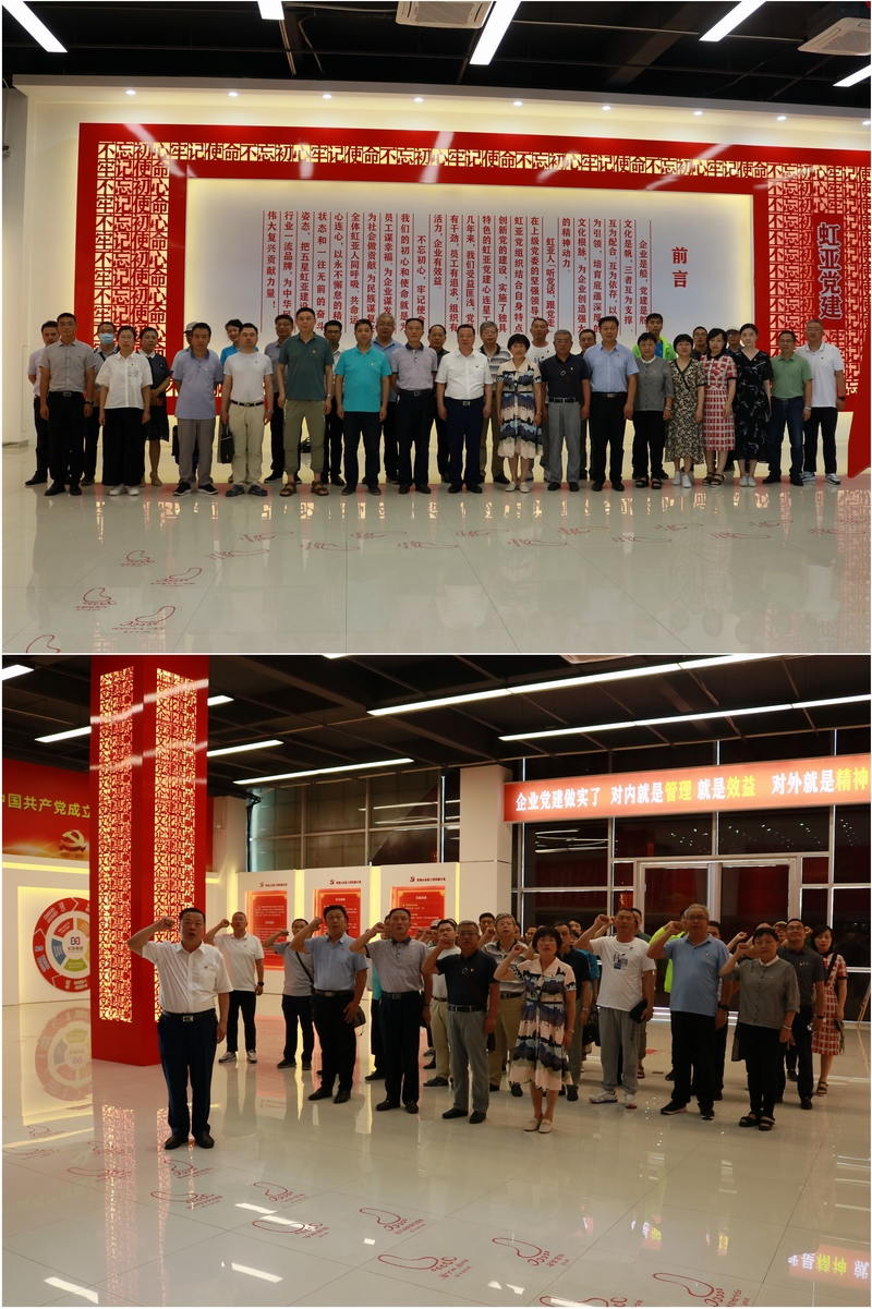 虹亚集团党建文化馆内,党委书记陈元高率领党员重温了入党誓词。虹亚集团党委副书记陈奎陪同参观了2000平米的党建文化馆,带领大家认真探寻建党百年的历史足迹,了解虹亚集团建党100周年“学党史强党性促发展”系列主题活动开展情况,学习虹亚集团“心连星”工程等特色党建活动。