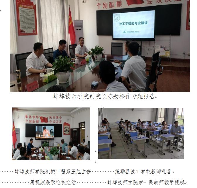 随后,蚌埠技师学院副院长陈劲松为该校中层以上干部作了《技工学校的专业建设》专题报告,机械工程系主任王旭为该校专业负责人和专业教师作了《机械工程系在提高技能竞赛成绩方面的探索》的专题报告,电子信息系、机电工程系教师与策勒县技工学校的老师们进行了面对面的交流,充分展示了我校的育才成果。