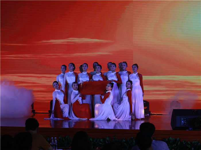 全省技工院校喜迎建党100周年文艺汇演由省人社厅主办。6月30日下午3:00,文艺汇演在安徽新华技工学校礼堂拉开帷幕,省人社厅党组成员、副厅长刘少华致开幕词。蚌埠技师学院节目《党旗,永远在我心中飘扬》第二个闪亮登场。伴随着激荡的旋律,在波澜壮阔的珍贵经典历史背景衬托下,演员们用优美奔放的舞姿,生动展示百年来中国共产党带领中国人民风雨同舟、艰苦奋斗、不怕牺牲取得的辉煌成就,真挚表达了对党的无限敬仰和热爱。演员们的精彩表演,打动了评委和全场观众,赢得了阵阵掌声,付出的汗水得到了回报。