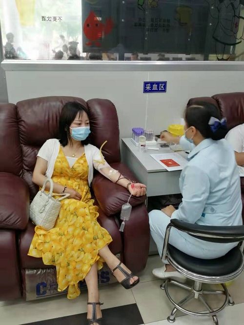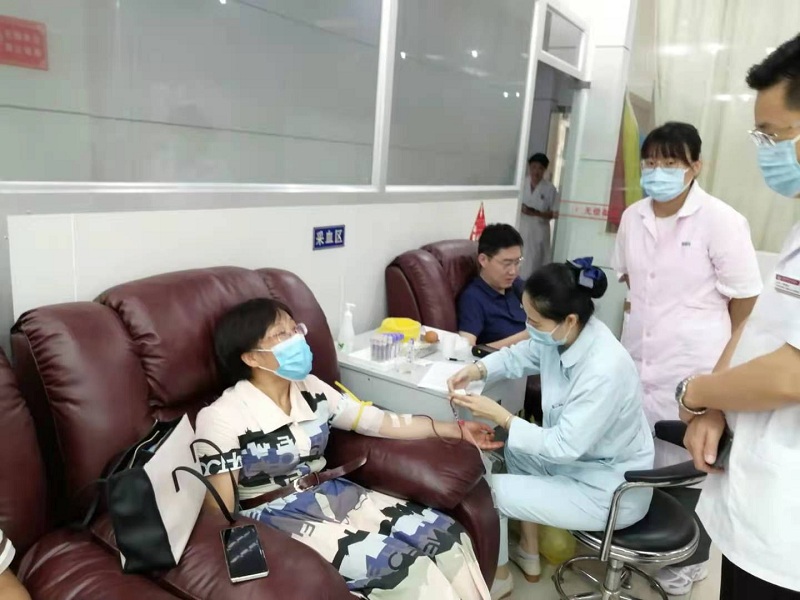 7月14日尽管天气很炎热,我院参加市人社系统无偿献血的教师们已早早的来到市中心血站采血大厅,在工作人员的引导下,大家有序排队取号、填表、体检、验血,合格后进行抽血。在采血医生的指导下,献血人员积极配合,伸出胳膊,让热血缓缓地流入一个个储血袋,整个场面十分感人。