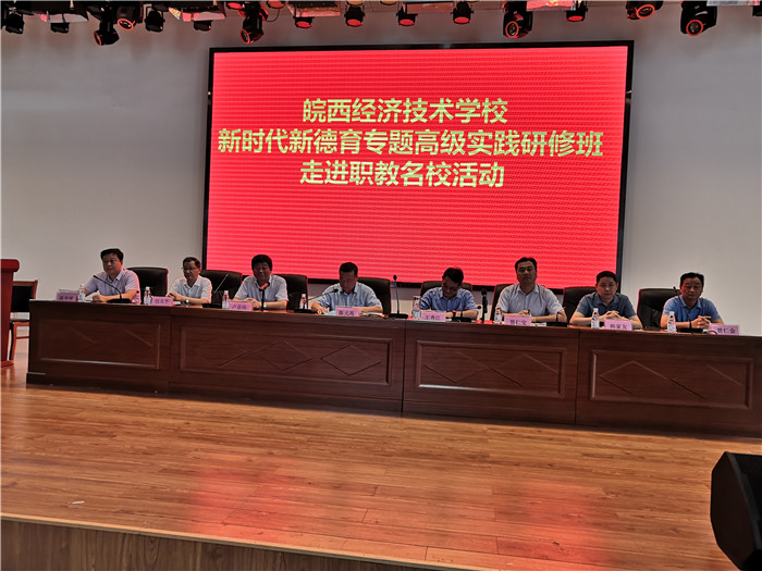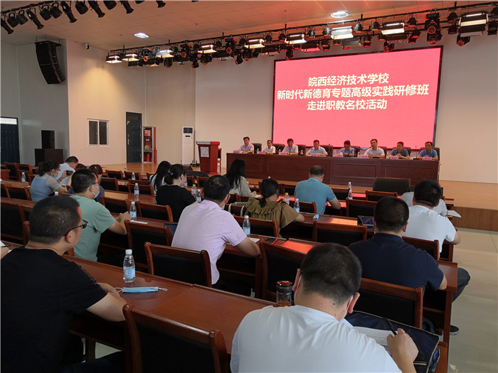 皖西经济技术学校1975年建校,与我院同属首批国家级重点职业院校、第三批国家中等职业教育改革发展示范学校。此次德育工作交流,是皖西经济技术学校新时代新德育专题高级实践研修班走进职教名校活动的内容之一。2019年5月,我院前往该校考察学习德育工作经验,受到热情接待。友情和支持弥足珍贵。交流会上皖西经济技术学校党委书记、校长王秀江感谢我院在暑假里提供了很好的学习交流机会,双方领导畅叙友情,共同祝愿学校越办越好。