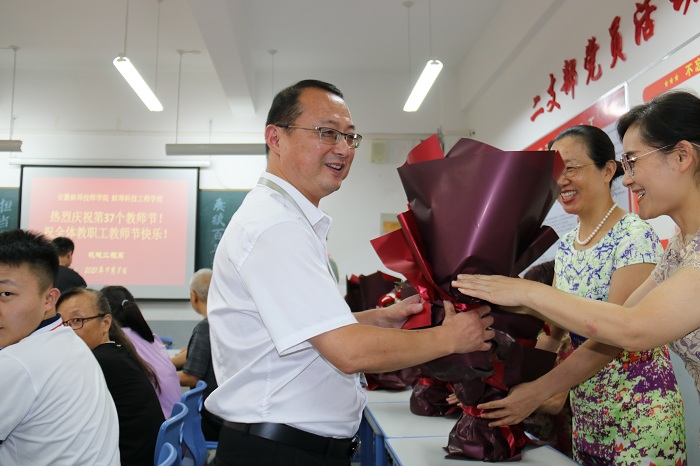 浓浓尊师意,款款献真情,学院领导走访慰问一线教师和离退休老教师。9月8日下午院领导来到系部,参加系部举行的教师节庆祝活动,为教师们献上美丽鲜花和真诚祝福,感谢他们为学院教育教学工作做出的突出贡献。