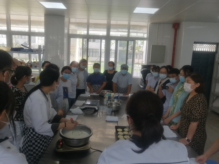 大家在学院烘培实训室,欢聚一堂,瞬间化身“西点大师”,在烘培老师的讲解和认真操作示范下,“西点大师”们相互协助,互相配合揉面、捏花样、想创意,忙的不亦乐乎,在烘培实训室一片欢声笑语中,制作出各种美味的月饼和西式糕点。