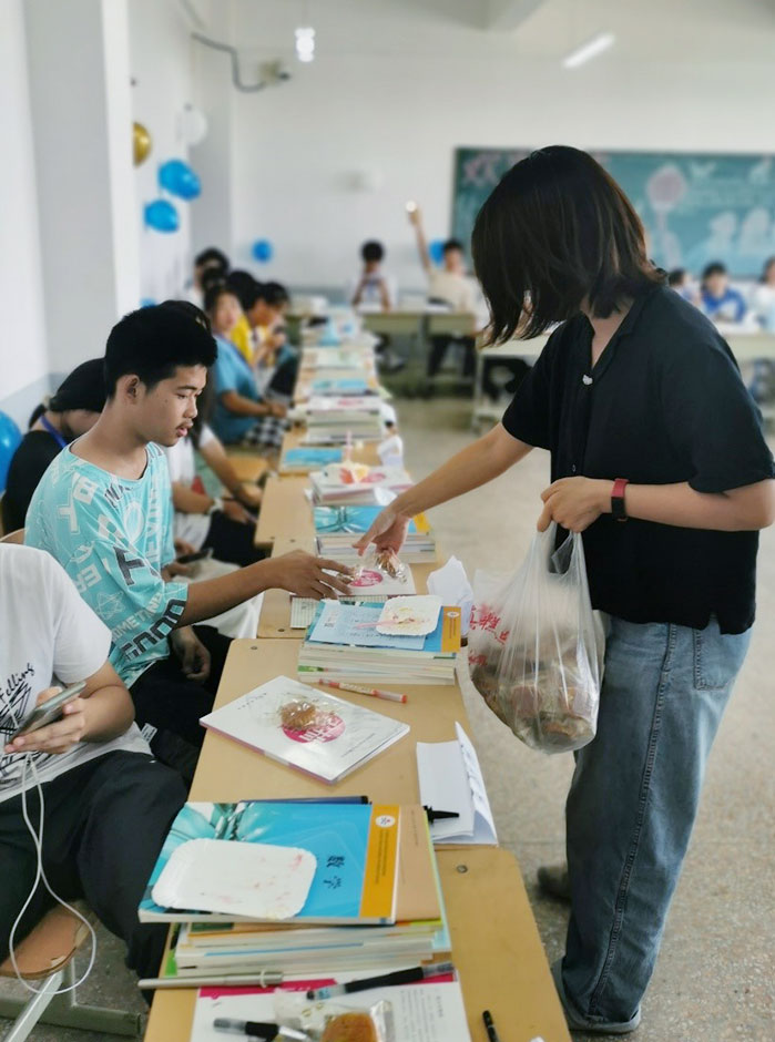 老师为全体同学分发中秋月饼,分享节日喜悦