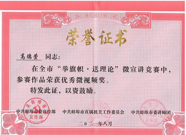 二支部高德萱老师在全市“举旗帜·送理论”党史学习教育微宣讲竞赛中斩获佳绩