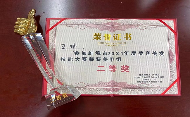 公共服务系教师王玮(女)代表我校参与美甲组比赛,荣获二等奖的优异成绩,充分展示了我校教职工的技能水平。此外,人物形象专业学生现场观摩学习,开拓了眼界,极大地激发了学习热情。(公共服务系 撰稿:安闯 审核:常伟伟)