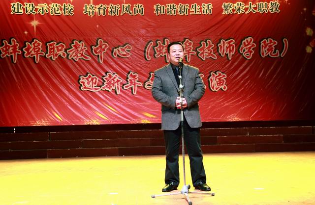 12月27日下午,一台精彩的迎新年文艺节目在蚌埠铁路工人文化宫内倾情上演。场外雪花飞舞,场内掌声雷动,我校师生欢聚一堂,同台演出,以自编自导的丰富多彩的艺术形式,展现了学校育人为本的素质教育办学成果和师生们良好的精神风貌。现场座无虚席,气氛热烈。市教育局李凯副局长等领导应邀出席并观看了演出。陈元高校长代表校领导班子致辞,并向全体师生致以新年的祝福。
