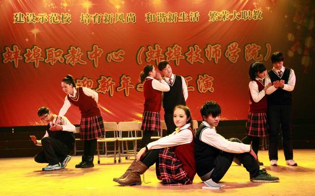 2012年是我校办学成果丰硕的一年,学校争创国家中等职业教育改革发展示范学校获得立项,为学校的持续发展增添了强劲动力,校企合作、产教融合、理实一体的教学改革取得了长足进展。展望2013年,校领导班子出台了“一个重点、两条主线、十二项举措”的发展思路,振奋了全校教职工的干劲。整台演出,唱响了“建设示范校、培育新风尚、和谐新生活、繁荣大职教”的主题,节目贴近师生生活和校园文化实际,参与活动的演职人员用高昂的歌声唱响了胸中的宏愿,用优美的舞姿昭示了职业教育辉煌的明天。