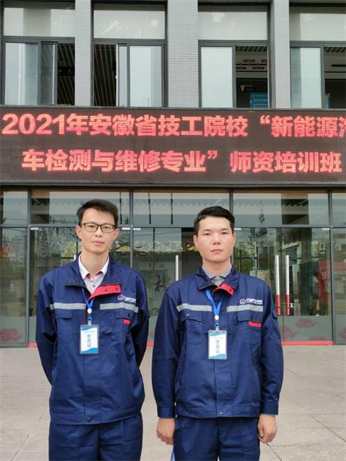 根据安徽省人力资源和社会保障厅工作安排,于11月5日至9日,在安徽万通汽车专修学院举办了新能源汽车检测与维修专业一体化师资培训班。我院机电工程系选派汽修骨干教师王子帅、褚凯歌两位教师参加培训。