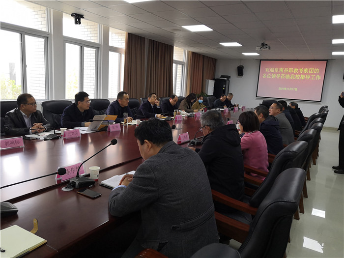 2021年11月17日下午,阜南县委组织部副部长、编办主任薛磊率县教育局、人社局、财政局局长及县属5所职业(技工)学校校长等一行13人莅临我院考察。市人社局职建科鲍帅科长、市教育局职教科负责人卢奎,院领导宋晓宾、王春燕、卢嘉砾、姚卫宁、包太平、陈华坤陪同。