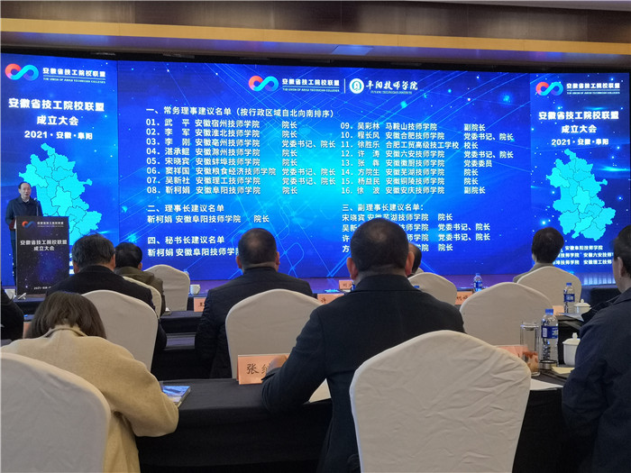 12月3日,联盟成立大会在阜阳技师学院举行,阜阳市委常委、常务副市长胡明文致辞,阜阳技师学院院长靳柯娟介绍了联盟筹备情况,我院宋晓宾院长宣读了倡议书,大会通过了联盟章程,选举了理事长、副理事长、常务理事、秘书长,发起单位推动启动球,宣布联盟成立。我院被推选为常务理事单位,宋晓宾院长被推选为副理事长。