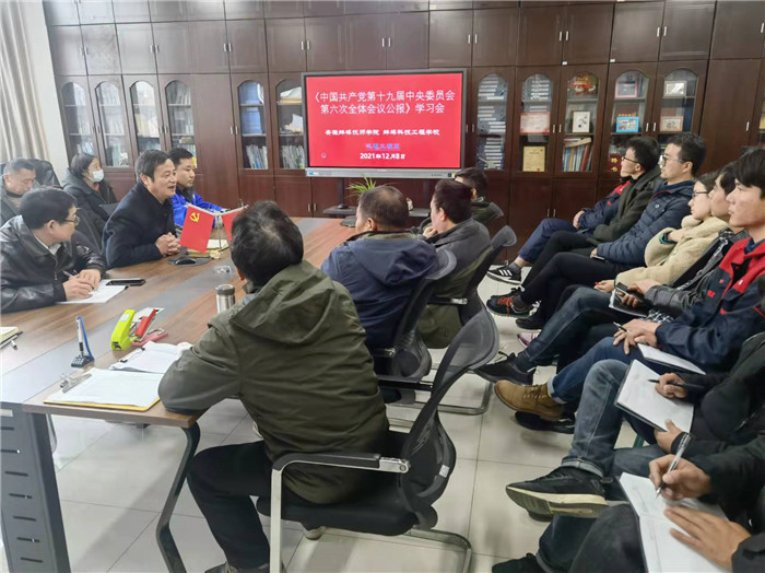 党的十九届六中全会闭幕后,学院党委迅即召开党委会,研究部署系统学习贯彻全会精神工作。充分利用党委理论中心组、干部月度例会、支部大会、教职工集中学习等载体,组织全体党员和干群深入学习全会精神。12月8日-10日,院党委在蚌埠市委党校举办了干部能力提升班,以全会精神武装党员干部头脑,进一步提高学院干部政治素养和履职能力。
