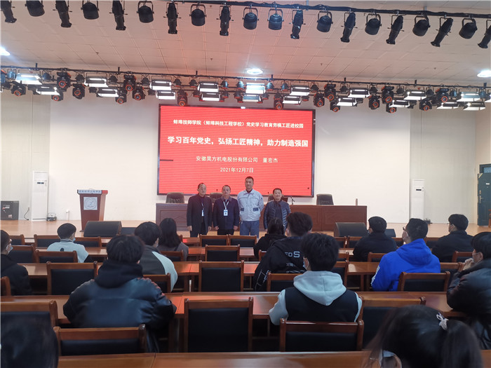 昊方机电高级技师董宏杰(右二)受邀来院作学习百年党史弘扬工匠精神专题报告