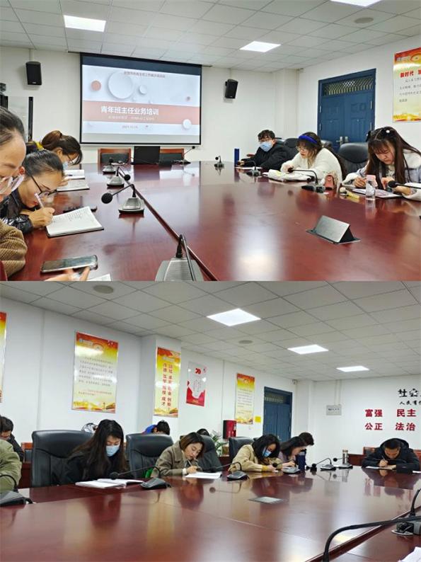为进一步发挥青年班主任在落实立德树人根本任务中的骨干作用,提高学院的德育工作水平,2021年12月15日下午放学后,我院名班主任工作室在行政楼三楼会议室举行了青年班主任工作能力提升培训会。三十多位青年班主任参加,会议由工作室负责人房慧萍同志主持。