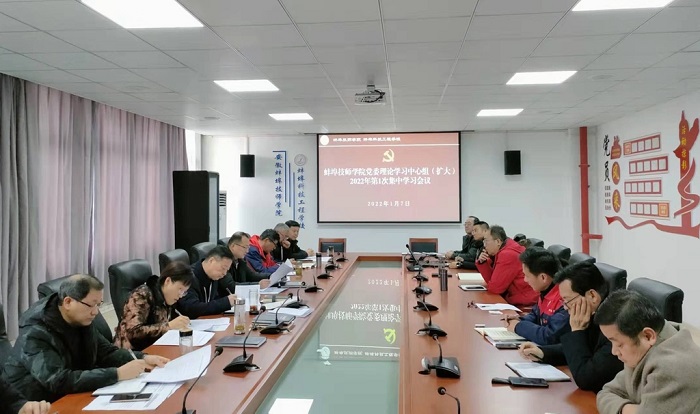 1月7日上午,蚌埠技师学院举行党委理论学习中心组(扩大)2022年第1次集中学习,学院领导班子成员、各党支部书记、各部门负责人参加,党委书记陈元高主持会议并讲话。