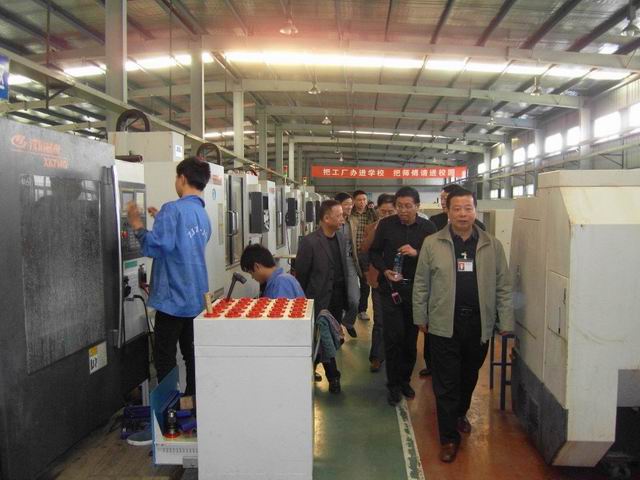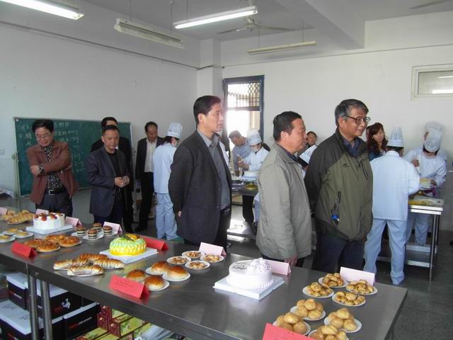 近年来,我校以国家中职示范校项目建设为抓手,加大投入提升实训能力,多形式开展校企合作,在引企入校、承接生产订单方面取得了突破性的成果,促进了产教融合,增进了效益。考察团分两组,在校领导引导下,有序进入数控实训车间、汽车维修实训车间、电子装配实训室、西点实训室、电子商务网店考察。各个实训室内,学生们在教师指导下,都在进行动手操作。贵宾们每到一处,系部负责人都向他们介绍产教融合情况,向他们展示学生的产品,向他们展示校企合作文化。在奶香四溢的西点艺术实训室,贵宾们还品尝了学生们亲手制作的蛋糕等食品,分享了该专业与蚌埠市老约翰企业校企合作、产教融合的成果。一流的教改成果、浓郁的专业特色给考察团留下了美好印象。