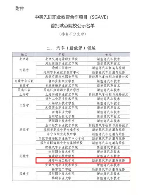 2月18日,教育部办公厅公布了首批中德先进职业教育合作院校名单,我院成功入选首批试点院校,新能源汽车运用与维修专业入选汽车(新能源)领域试点专业。