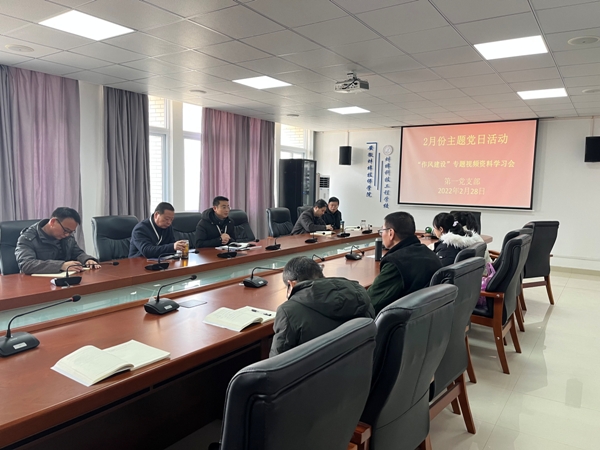 按照蚌埠技师学院党委工作部署,第一党支部于2022年2月28日下午2:45在行政楼4楼会议室开展2022年2月份主题党日活动——“作风建设”专题视频资料学习会。活动由支部书记李恪同志主持,院党委书记陈元高同志参加活动。