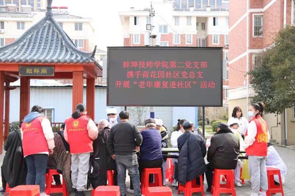 为深入学习贯彻党的十九届六中全会和习近平总书记重要讲话精神,持续深化党史学习教育,扎实推进“我为群众办实事”实践活动落地见效。春意盎然的三月,蚌埠技师学院第二党支部携手医护系,与共建单位淮上区荷花园社区共同开展“弘扬雷锋精神·争当社区先锋”之“老年康复进社区 ”志愿活动。