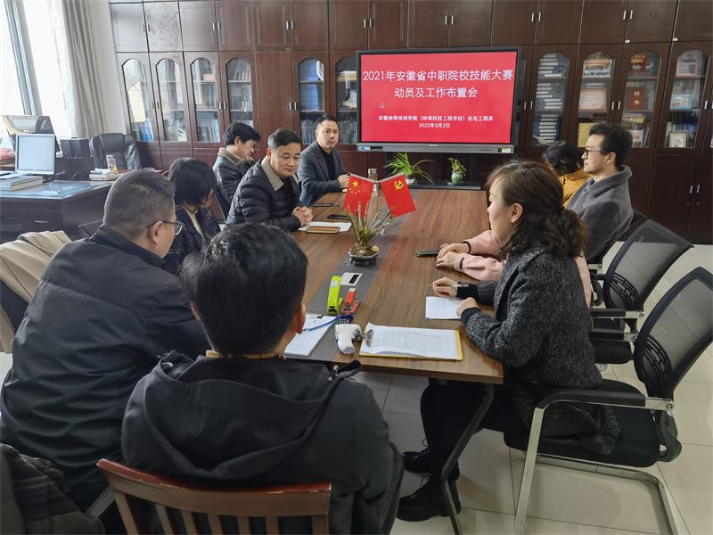 3月2日下午,我院机电工程系在学院3号楼206室组织召开了2021年度安徽省中职院校技能大赛动员及工作布置会。系部领导及相关赛项指导教师参加了此次会议,会议由机电工程系主任焦其彬主持。