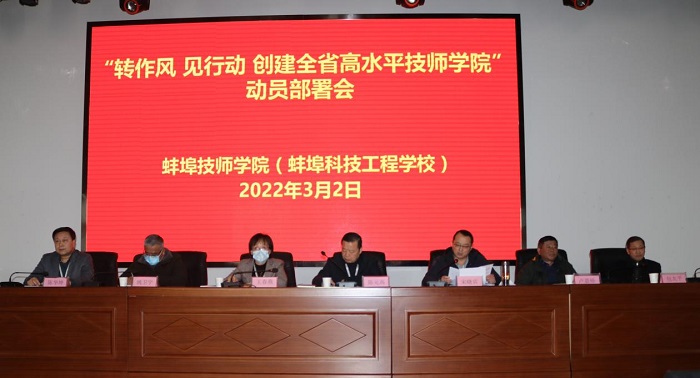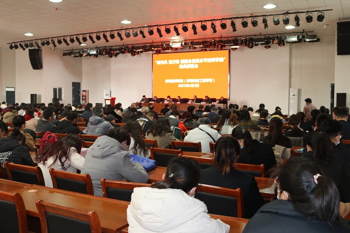 乘势而上启新程 砥砺奋进开新局。为创建全省高水平技师学院,3 月 2 日下午两节课后,学院在信息楼二楼报告厅召开了创建高水平技师学院建设工作动员部署会。院领导班子成员及全体教职工参加会议,宋晓宾院长主持会议。
