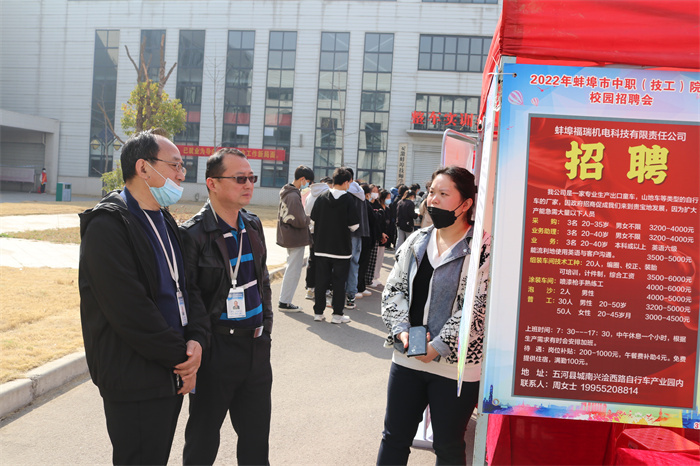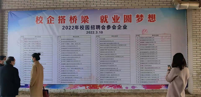 2022年3月10日上午,由蚌埠市人社局、蚌埠市教育局主办,蚌埠职教园各中职学校(含两所省属技师学院)协办,蚌埠技师学院(蚌埠科技工程学校)和蚌埠人力资源行业协会承办的“校企搭桥梁 就业圆梦想”校园招聘在蚌埠技师学院公共实训中心盛大举行。本次招聘会共有80余家行业内知名企业(单位)参会,全市中职院校(含省属)2022届毕业生2000余人参加招聘会。