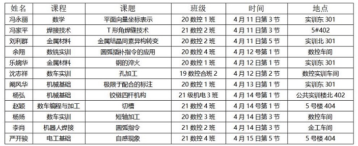 4.20级数控3、4班进行数控车和数控铣各2周轮训;21级数控1、2班进行钳工、焊工各2周轮训教学。