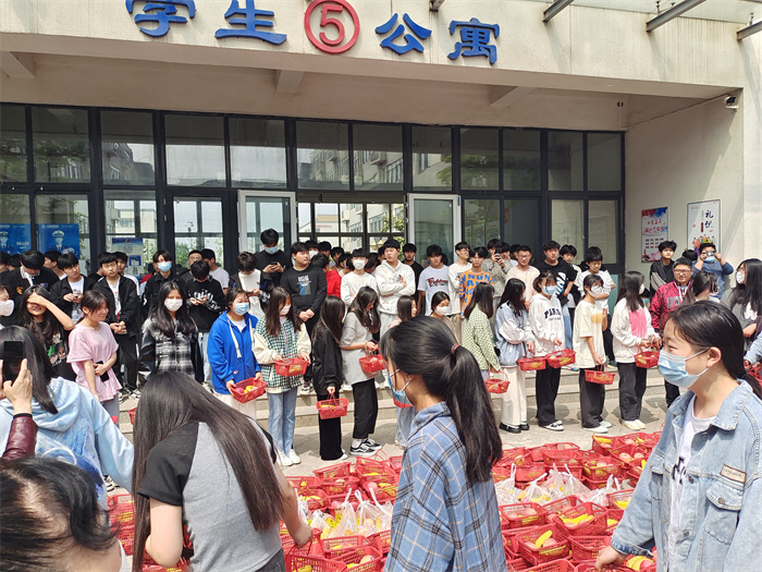 因疫情影响,“五一”期间留校住宿的学生达500多人,有的学生已经两个多月没有回家了。为缓解在假期疫情防控期间同学们的焦虑心情,营造和谐美好的校园氛围,院领导一行向同学们赠送了爱心水果篮,并代表学院向大家表达了节日的问候和祝福。在交流中,院领导详细了解同学们的生活需求和学习情况,鼓励同学们合理安排假期生活和学习时间,叮嘱大家互助互爱,严格遵守学校各项疫情防控规定,有困难随时向老师反映,学院将及时为大家解决问题。院领导还嘱咐同学们假期间多与父母联系,及时沟通在校学习生活情况,让父母安心;要劳逸结合、合理膳食、增强锻炼,合理安排好假期生活。同学们在“五一”期间收到了来自学院的关怀,表示十分感动。疫情肆虐,是学院的保护和关心保障了同学们的身心健康。同学们纷纷表示感谢院领导的亲切关怀和暖心慰问,将全力配合学校各项疫情防控工作,今后会更加珍惜在校时光、刻苦努力,以良好的表现和优异的成绩回报学校,为母校争光。