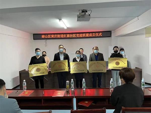 为深入推进基层党组织“结对共建、融合共赢”,增强基层党组织的向心力和凝聚力,着力构建基层党建工作新格局。5月13日下午,蚌埠技师学院第四党支部与蚌山区黄庄街道红旗社区开展党建联盟签约仪式,黄庄街道党工委副书记张晟楠、财税所所长胡胜明、红旗社区“两委”班子成员及党建联盟成员单位代表出席签约仪式,蚌埠技师学院第四党支部选派统战委员李雯同志出席并签订《党建联盟协议书》,同时接受现场授牌。