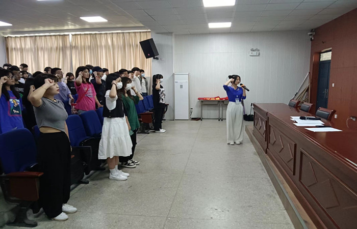 在仪式的最后,全体同学面对国旗庄严宣誓,坚决拥护中国共产党的领导,正确行使权力,忠实履行义务,弘扬社会道德,做有理想、有本领、有担当的好青年,努力成为中国特色社会主义合格建设者和可靠接班人。 (撰稿:余翔 审核:孙志伟)