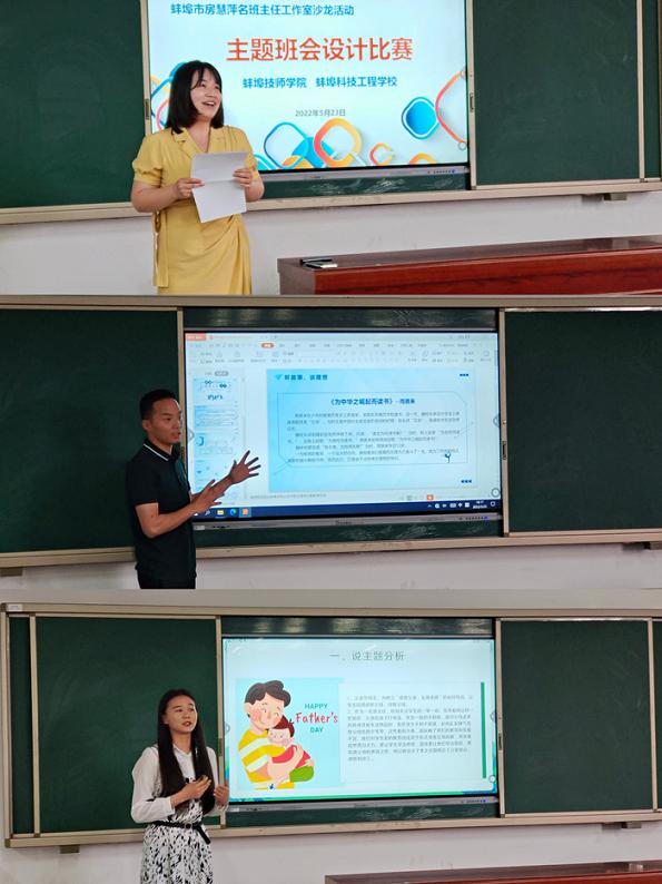 为提高我院名班主任工作室示范、引领作用,提高班会课质量和班主任的工作能力,打造和建设市级优秀名班主任工作室。2022年5月23日下午,我院名班主任工作室在四号教学楼阶梯教室举行了“主题班会设计比赛”,陈华坤副院长、学生处李恪处长、工作室主持人房慧萍和成员参加了本次活动,比赛邀请了我院办公室、组织人事处、教科研处等部门负责人担任嘉宾评委。