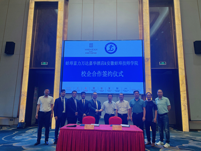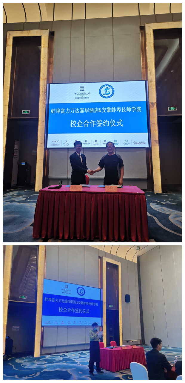 6月16日下午,蚌埠技师学院与蚌埠富力万达嘉华酒店校企合作签约仪式在蚌埠富力万达嘉华酒店举行。学院党委书记陈元高、院长宋晓宾、副院长陈华坤携招就办一行6人出席了签约仪式,我院2020级12名同学参加仪式。