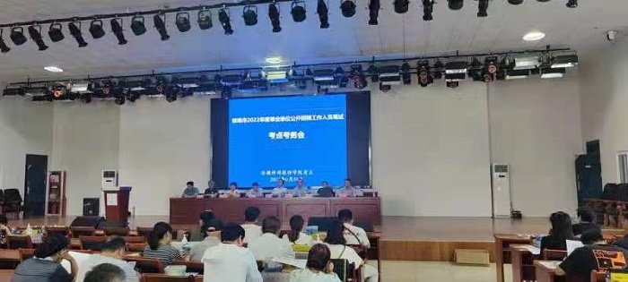 本次考试作为全市人事招聘的重要大考,市领导及相关部门高度重视。我院作为全市八个考点中,唯一属于市人力资源和社会保障局下属单位,在整个考务工作过程中,市局相关领导亲自坐镇指挥。为保证此次考务工作的顺利进行,学院在考前通过召开高规格的考点考务会,要求全体考务工作人员要从思想上高度重视,要在工作中用心谋划、精心组织,既要严格按照考务要求履行考务职责,又要细致耐心的为考生做好服务。