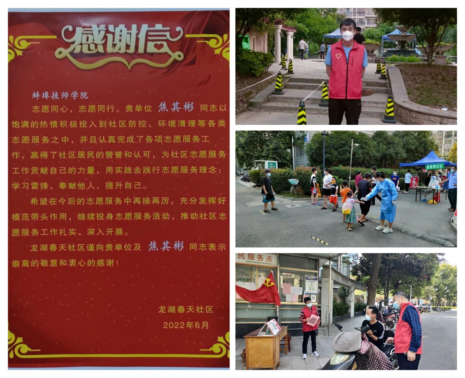 今后的志愿服务中我系教师党员将再接再厉,充分发挥好模范带头作用,继续投身各项志愿服务活动。我系全体教师将与全市人民一道,团结一心,攥指成拳,共克时艰,用实际行动守护蚌埠平安,全力以赴打赢这场疫情防控阻击战。