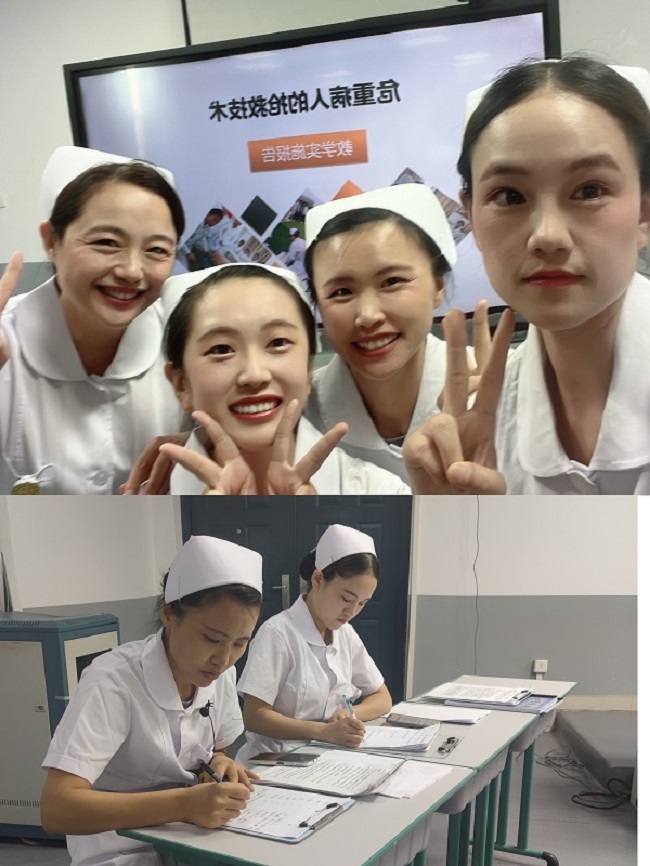 我的小伙伴是坐在我对面的刘德艳、陈丽宇,以及蚌埠市第二人民医院的丁翠芳老师。从4月份接到比赛,我们四个人就组成了一个团队,经过一次次的头脑风暴我们确定了课题,经过分工合作,查找资料、书写教案、一次次的修改,最后完成了初赛的拍摄。初赛结束我们以为没希望了,没想到我们以小组第九名的成绩冲进了省级选拔赛。知道结果是8月1号晚上,8月11号就要进行决赛,虽然时间非常紧迫,但我们下定决心,珍惜这次来之不易的机会,一定要一起努力冲进一等奖的序列。对于我们来说,这是第一次进入决赛,要准备的材料非常多,要根据大赛的要求,完善实施报告与教案、准备场地和直播设备、在比赛场地反复打磨课程,因此,我们一起在星巴克奋战到餐厅打烊、一起在回家的路上看过最美的晚霞、一起在深夜“傻傻”地蹲在马路边等过车。