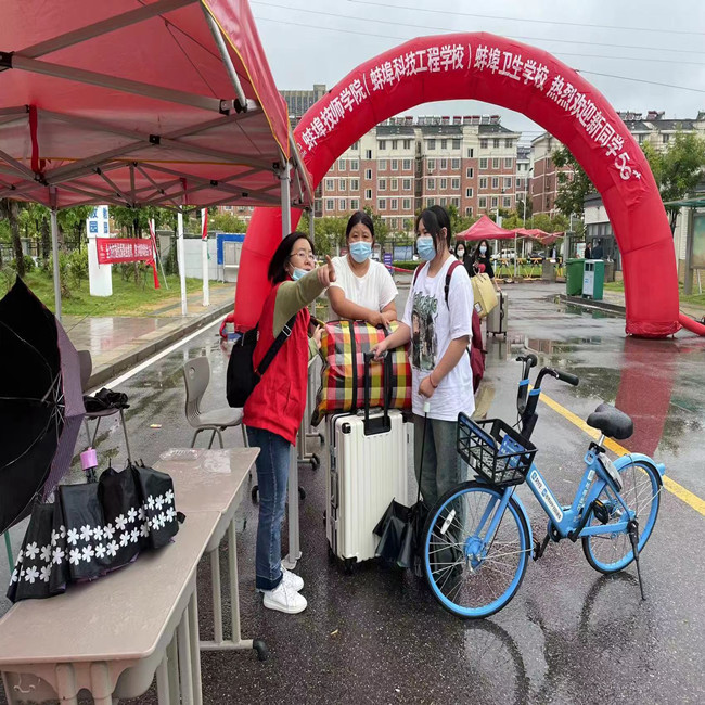 8月30日,细雨微朦,22级新生冒着雨陆续进入校园,开始自己的在蚌埠技师学院的新生活。