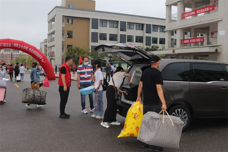 在疫情防控常态化的形势下,学院把保障学生健康安全放在首位,为方便新生入学报到,学院安排多辆爱心摆渡车在东、南两个门口为新生运送行李。
