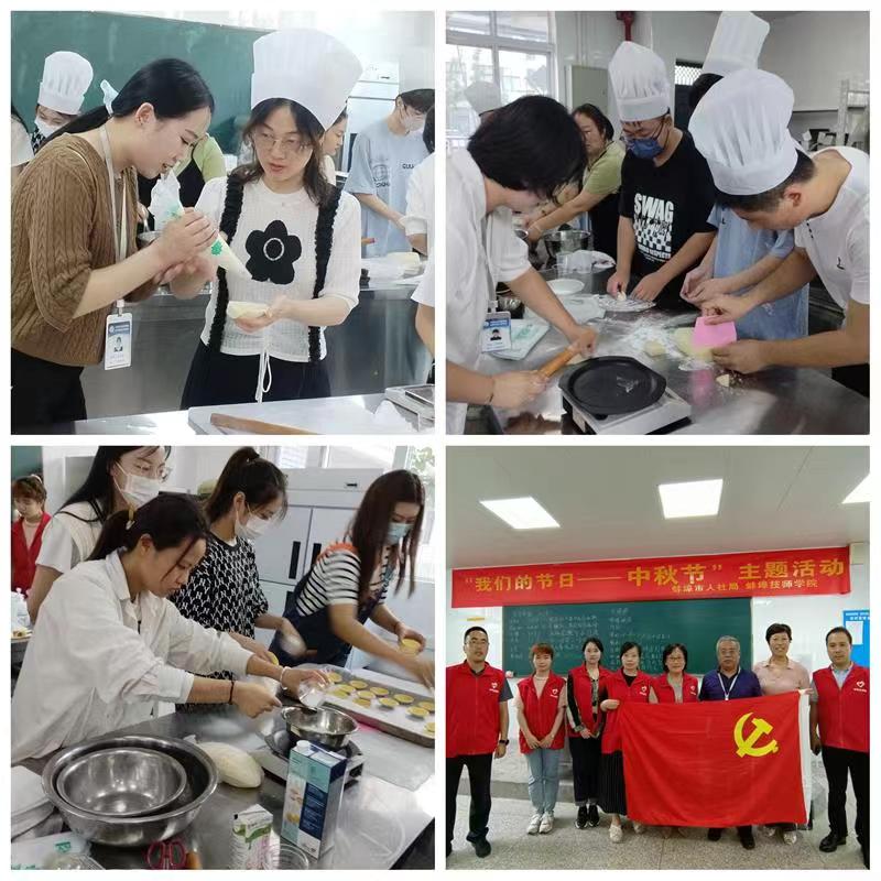 9月8日下午,蚌埠技师学院第四党支部联合公共服务系开展“我们的节日-中秋节”冰皮月饼、葡式蛋挞、雪媚娘制作主题党日活动,活动邀请蚌埠市人社局相关部门领导和工作人员,大家齐聚西点艺术实训室,共同弘扬中华民族优秀传统,营造欢乐祥和节日氛围。