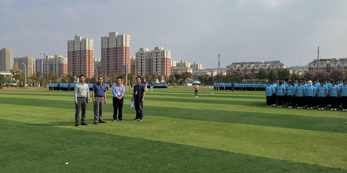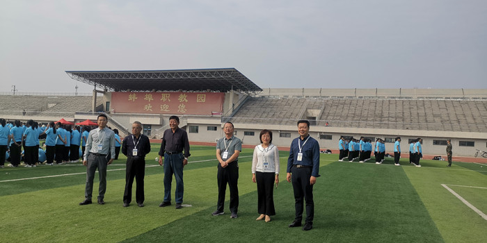 学院党委书记陈元高、院长宋院长等院领导一行来到操场,看望2022级1800名军训的同学们,陈书记对大家不怕苦不怕累的精神表示赞赏,鼓励大家从军训中汲取养分,着力锻造坚韧不拔的意志、树立砥砺前行的目标,练就一技之长成就美丽人生。
